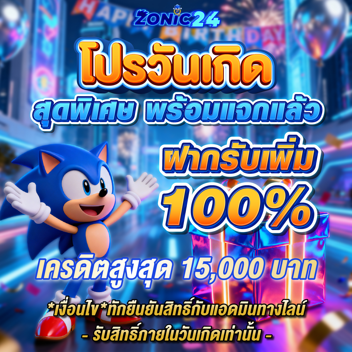ฉลองวันเกิด รับเครดิตฟรี 100%